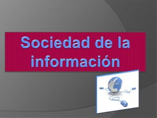 Una sociedad de la información es aquella en la que las tecnologías que facilitan la creación, distribución y manipulación de la información juegan un papel importante. Esto permite a las personas permanecer en contacto a bajo costo, explorar bibliotecas globales y acceder a noticias e información de todo tipo. Sin embargo, también conlleva riesgos como virus, contenido inapropiado y hackers. Vivimos en un mundo con gran disponibilidad de datos e información de diversas partes del mundo, aunque no siempre es fácil identificar