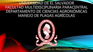 Este documento describe el manejo de plagas agrícolas en el cultivo de café en El Salvador. Explica los requerimientos edáficos y climáticos del café, su descripción anatómica, las variedades cultivadas localmente y métodos de siembra. Luego identifica las principales enfermedades como la antracnosis, cercospora y roya, así como plagas como la broca del café y minador de la hoja. Detalla la ubicación taxonómica, ciclo de vida y síntomas de la roya del café,