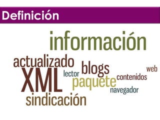 Este documento habla sobre las Tecnologías de la Información y la Comunicación (TIC) y la educación social. Explica qué es Really Simple Syndication (RSS), cómo funciona la suscripción a información a través de lectores RSS como Google Reader, y cómo esto puede cambiar rápidamente la información disponible en Internet.