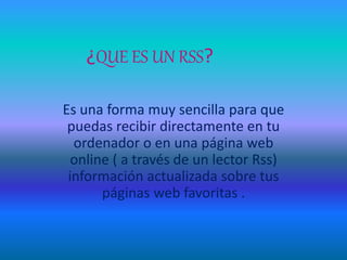 RSS es una forma estandarizada de distribuir información actualizada de páginas web a través de canales RSS. Los lectores RSS permiten a los usuarios recibir automáticamente contenidos actualizados de sus páginas web favoritas en un solo lugar de manera sencilla. Los lectores RSS pueden instalarse directamente en el ordenador o usarse en línea para gestionar y mantenerse informado fácilmente de varias fuentes a la vez.