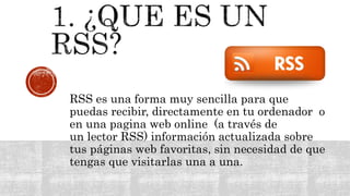 RSS permite que los usuarios reciban información actualizada de sus páginas web favoritas de forma automática a través de un lector RSS sin necesidad de visitar los sitios individualmente. Los usuarios se suscriben al feed RSS de un sitio, y cuando el sitio actualiza su contenido, el lector RSS lo descarga y lo muestra al usuario.