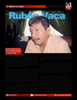 Rubén Vaca fue ejecutivo seccional de Villamontes por el PAN y alcalde de Villamontes por el MNR en dos gestiones. Ha demostrado ser hábil y ambicioso políticamente. Muchas de sus afirmaciones desataron controversias e incluso inquietaron al gobierno nacional.