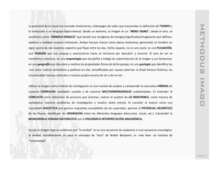 Este documento presenta una discusión sobre el uso de la imagen como método de investigación para comprender problemas complejos. Propone que la imagen puede revelar significados más allá de lo que puede expresarse con palabras de manera lineal, y servir como punto de partida para explorar temas de forma más profunda y multidimensional que desafíen perspectivas dominantes. Como ejemplo, se analiza el potencial de cierta imagen para ayudar a entender mejor la crisis del periodismo en la era digital más allá de explicaciones superficiales.