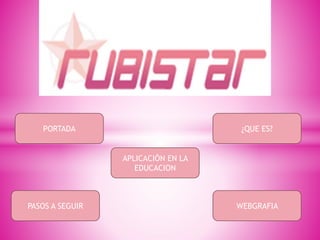 Este documento proporciona información sobre la herramienta Rubistar, la cual ayuda a los educadores a crear rúbricas de calidad de manera gratuita. Explica que Rubistar ofrece plantillas para crear rúbricas, permite personalizar las categorías y niveles de desempeño, y da la opción de guardar, imprimir y editar las rúbricas en línea o de manera offline. También describe los pasos básicos para crear y modificar una rúbrica utilizando esta herramienta.