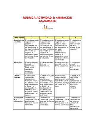 Este documento contiene 5 rúbricas para evaluar diferentes actividades matemáticas. Cada rúbrica incluye categorías como razonamiento matemático, errores matemáticos, estrategias, organización y conclusión. Las rúbricas asignan puntajes de 1 a 4 para cada categoría, con descripciones de lo que califica cada puntaje.