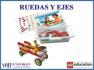 Este documento describe 8 modelos de vehículos de juguete, incluidos modelos deslizantes y descendientes de ruedas y ejes, modelos de un solo eje y ejes separados, y un modelo con una manija de torno de cuerda, posiblemente para un auto Lego.
