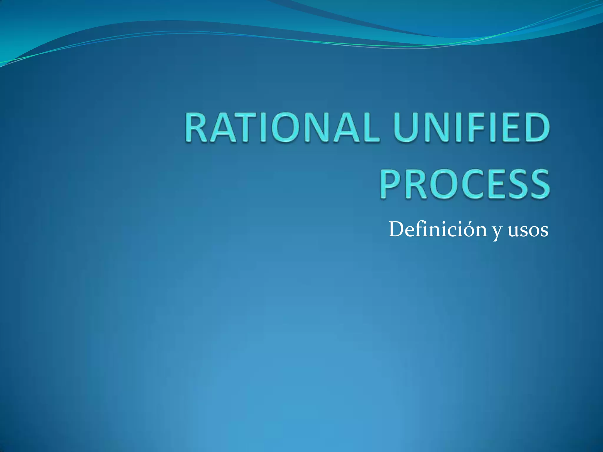 El RUP (Rational Unified Process) es una metodología genérica de desarrollo de software que provee un enfoque disciplinado e iterativo dentro de una organización. Se basa en mejores prácticas y utiliza UML para modelar el sistema, enfocándose en la arquitectura y siendo dirigido por casos de uso. El RUP es adaptable a cada organización y está diseñado para integrar componentes de software.