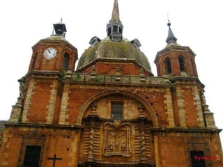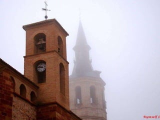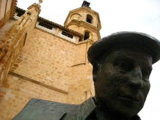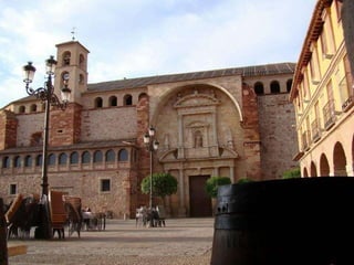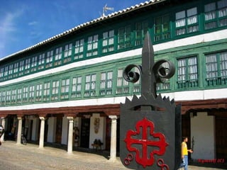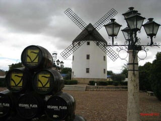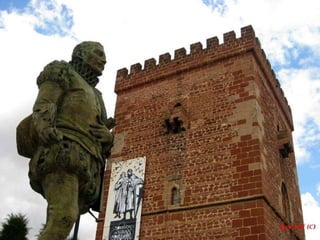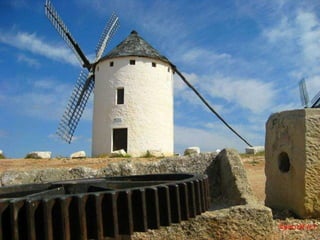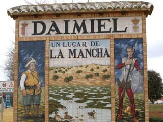 Este documento presenta una ruta por lugares relacionados con El Quijote de Miguel de Cervantes. Comienza en Villanueva de los Infantes, el lugar de nacimiento del Tío la Vara, y luego menciona otras ciudades como Valdepeñas, Almagro, Ciudad Real y Alcázar de San Juan. También señala lugares como La Solana, San Carlos del Valle, Campo de Criptana y Tomelloso, así como características geográficas como el Pantano de Peñarroya y los Campos Manche