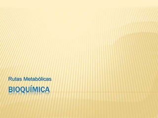 Este documento describe las rutas metabólicas y sus características. Explica que una ruta metabólica es una sucesión de reacciones químicas que convierten un sustrato inicial en uno o más productos finales a través de metabolitos intermedios. Describe las rutas catabólicas, anabólicas y anfíbolicas, y los factores que afectan la velocidad de las reacciones de las rutas metabólicas, incluyendo la importancia del ATP.