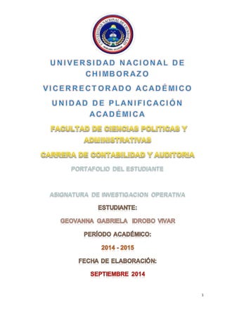 El documento describe la estructura estándar de un portafolio de estudiante, incluyendo una portada, índice, presentación, aspectos preliminares como las misiones y visiones de la universidad y carrera, el sílabo de la asignatura, evidencias de actividades de aprendizaje como trabajos individuales y colaborativos, prácticas, evaluación del proceso de aprendizaje a través de autoevaluación, coevaluación y heteroevaluación, evidencias de actividades de recuperación pedagógica, sugerencias y anex