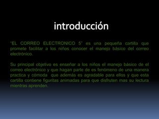Este documento explica los conceptos básicos del correo electrónico. Detalla que el correo electrónico fue creado por Ray Tomlinson en 1971 y permite la comunicación a través de Internet. Describe los elementos necesarios para usar el correo electrónico como una cuenta de correo, acceso a Internet y un programa de correo. Además, explica cómo funciona el envío y recepción de mensajes de correo electrónico.