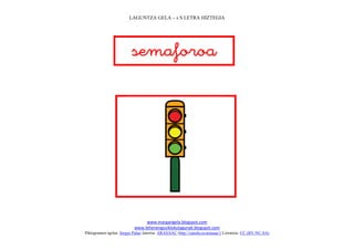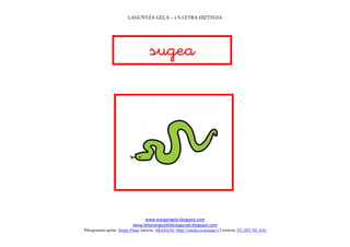 Este documento presenta una lista de palabras que comienzan con la letra "s" en euskera, acompañadas de pictogramas ilustrativos. Cada palabra está escrita en euskera y acompañada de un pictograma simple que representa su significado.