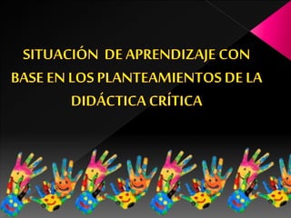 Este documento describe el diseño de una situación de aprendizaje basada en la didáctica crítica con el objetivo de que los estudiantes identifiquen sus propias costumbres navideñas y cómo se celebra en otros países. La situación de aprendizaje incluye objetivos, contenidos, y tres momentos: apertura, desarrollo y culminación, donde los estudiantes exploran las tradiciones navideñas de México, Alemania y Estados Unidos. El documento concluye comparando la didáctica crítica con los ideales educat