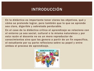 Este documento presenta una situación de aprendizaje diseñada con base en la didáctica crítica para estudiantes de nivel medio superior. La situación de aprendizaje se enfoca en identificar los elementos políticos, económicos y culturales de Europa del siglo XV y XVI y su influencia en la colonización de América. Incluye tres momentos: apertura, desarrollo y cierre, evaluación y conclusiones sobre el proceso de aprendizaje.