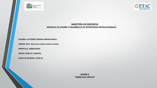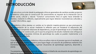 Este documento presenta una situación de aprendizaje diseñada con base en la didáctica crítica para una unidad de geografía. La situación de aprendizaje consta de tres momentos: apertura, desarrollo y cierre. En la apertura se plantea una pregunta generadora. En el desarrollo, los estudiantes indagan información para responder preguntas secundarias y construyen esquemas. En el cierre, presentan sus esquemas como respuesta a la pregunta generadora original.