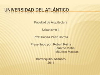 El documento analiza la estructura y morfología urbana del municipio de Sabana Grande en Colombia. Identifica los distritos, nodos, hitos, bordes y vías que componen la estructura del municipio. Explica que los distritos no siguen una clasificación de estratificación sino factores cronológicos. Señala que los nodos principales son la plaza de la iglesia, el cementerio y el puente. Las iglesias son los hitos visuales más destacados. Los bordes naturales son la ciénaga y el río Magdal