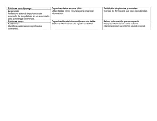 Palabras con diptongoOrganizar datos en una tabla
