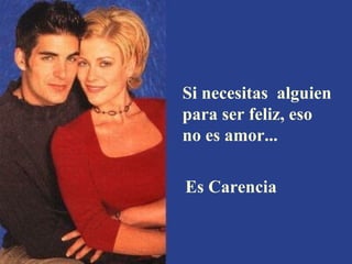 El documento define qué no es el amor a través de varias oraciones. No es amor la carencia, los celos, la dependencia, el egoísmo, la pasión o la amistad. El amor verdadero es paciente, servicial, no tiene envidia, no actúa con bajeza, no busca su propio interés, no se deja llevar por la ira, perdona las ofensas, se alegra de la verdad y soporta todo.