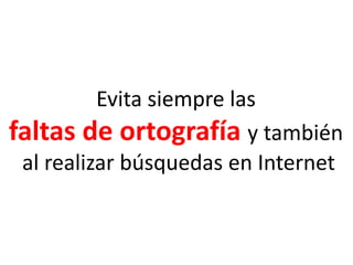 Este documento ofrece consejos para realizar búsquedas más efectivas en Google, incluyendo el uso de comillas para buscar frases exactas, el signo menos para excluir palabras, OR para buscar términos alternativos, y dos puntos para buscar rangos numéricos. También recomienda el uso de asteriscos como comodines y varios operadores como site:, filetype:, link:, y define: para filtrar resultados por dominio, tipo de archivo, enlaces entrantes, y definiciones respectivamente.