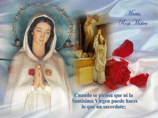Este documento describe la importancia y dignidad del sacerdocio católico. Explica que solo un sacerdote puede convertir el pan y el vino en el Cuerpo y la Sangre de Cristo y perdonar los pecados. Argumenta que el mundo necesita más vocaciones sacerdotales para continuar recibiendo los sacramentos. Alienta a apoyar seminarios y noviciados para fomentar nuevas vocaciones que lleven a Cristo al altar.