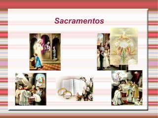 Este documento describe 7 sacramentos de la religión cristiana: el sacerdocio, la confesión, la confirmación, el bautismo, la comunión, y el matrimonio. Cada sacramento consiste en una ceremonia sagrada que da vida sobrenatural al alma y fortalece la fe y el amor a Dios a través de la gracia divina.