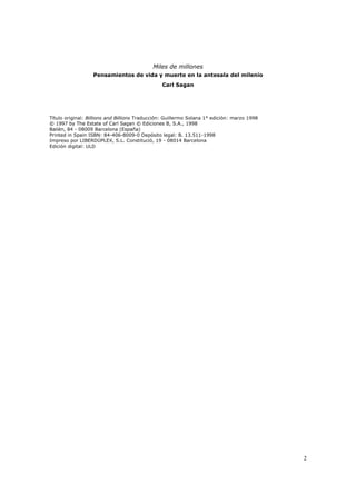 El documento habla sobre los grandes números y la importancia de usar la notación científica para expresarlos de manera precisa. Explica cómo expresiones como "miles y miles de millones" son imprecisas y cómo los números que se consideraban grandes antes, como millones, ahora parecen pequeños ante conceptos como billones. También establece las diferencias entre millones, billones y trillones, y la importancia de contar ceros para no equivocarse con estos grandes números.