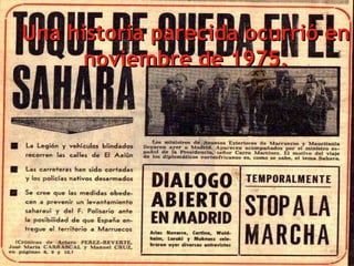 El documento describe la historia del pueblo saharaui y su situación actual. Tras la retirada española del Sáhara Occidental en 1975, Marruecos ocupó el territorio y el gobierno español abandonó a los saharauis. Miles de refugiados saharauis huyeron a campamentos en el desierto argelino, donde subsisten gracias a la ayuda internacional. A pesar de su lucha no violenta por la libertad y su magnífica organización en el exilio, los saharauis siguen siendo un pueblo olvidado