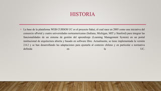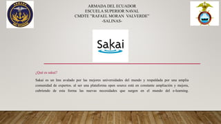 Sakai es una plataforma de aprendizaje en línea respaldada por universidades líderes a nivel mundial y por una gran comunidad de expertos. Es de código abierto y está en constante mejora para satisfacer las nuevas necesidades de e-learning. Se originó en 2005 como una iniciativa de cuatro universidades estadounidenses para integrar funcionalidades de gestión del aprendizaje en un portal institucional de arquitectura abierta y basado en software libre.