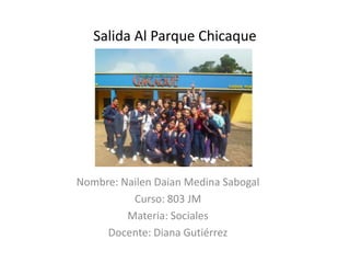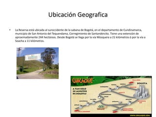 El Parque Natural Chicaque se ubica al suroccidente de Bogotá y cuenta con 244 hectáreas. Fue habitado originalmente por los Muiscas y Panches. Contiene una rica variedad de flora y fauna, así como cascadas, y representa el patrimonio histórico de la región. El documento describe la ubicación, historia y cultura del parque, así como las actividades económicas y problemas sociales de las ciudades aledañas.