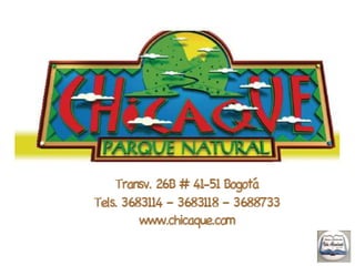 El documento proporciona detalles sobre una salida al Parque Natural Chicaque el 16 de julio de 2011, incluyendo la fecha y hora de salida, los costos, recomendaciones, y las actividades que incluyen caminatas por senderos y observación de la naturaleza. Se pide orar para que Dios esté con el grupo durante la salida.