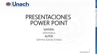 PowerPoint es un programa creado por Microsoft que permite crear presentaciones utilizando texto, imágenes, video y música. Funciona como un editor con plantillas y opciones para desarrollar diapositivas. Entre sus ventajas se encuentra que permite hacer presentaciones atractivas para el público de una manera fácil, y entre sus desventajas es que los archivos pueden ser pesados y haber incompatibilidad de formatos. PowerPoint es una herramienta útil para la exposición de contenidos que abre oportunidades en los estudios y trabajo.