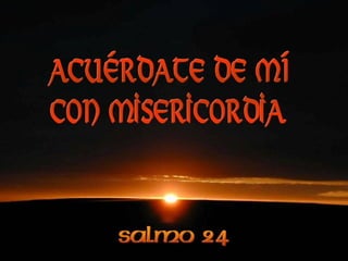 El salmo expresa la confianza del salmista en la misericordia de Dios, apelando a Él en medio de la soledad y la aflicción. El salmista pide a Dios que lo guíe por el camino correcto y le enseñe Sus caminos, reconociendo que sólo Dios puede perdonar los pecados y recordarlo con bondad.