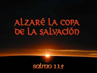 El documento describe cómo el salmo 115 resume la experiencia del pueblo de Israel durante la Pascua, cuando fueron liberados de la esclavitud en Egipto. Expresa la desesperación del pueblo al ser perseguidos por el ejército egipcio hasta que Dios abrió el Mar Rojo, salvándolos. La Pascua era una celebración de alegría y acción de gracias a Dios por su salvación. Jesús celebró la última Pascua con sus discípulos la noche antes de morir y resucitar.