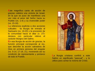 3. El salmo expresa alegría pascual por la victoria sobre la muerte a través de Cristo y un llamado a alabar a Dios cada día.