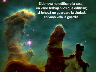 El salmo 127 enfatiza la importancia de Dios en la construcción de una casa y la protección de una ciudad, y describe a los hijos como una bendición de Dios. Explica que el trabajo humano es en vano sin Dios y compara a los hijos con flechas bien preparadas por un hombre poderoso, resaltando la necesidad de esforzarse en educarlos para que alcancen metas positivas.