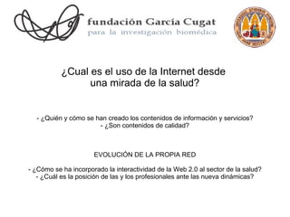 Este documento discute el uso de las redes sociales y la web 2.0 en el sector de la salud desde la perspectiva de los profesionales. Señala que los profesionales deben formar parte de las conversaciones en línea sobre salud para compartir información de calidad con pacientes. También destaca que tener una presencia en redes sociales puede ayudar a que los pacientes se sientan más cómodos durante las consultas y puedan acceder a material educativo de confianza.