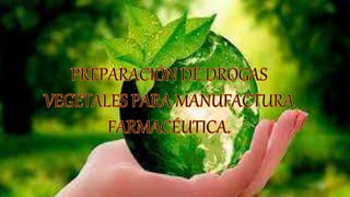 El documento habla sobre los preparados obtenidos de drogas vegetales mediante tratamientos como molienda, extracción, destilación o fermentación. También describe conceptos básicos relacionados a drogas, plantas medicinales, principios activos y medicamentos. Explica los procesos de recolección, conservación y métodos para la obtención de principios activos de las plantas, incluyendo la extracción mecánica, por destilación o mediante disolventes.