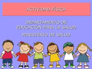 Este documento proporciona definiciones de salud, actividad física, ejercicio físico y deporte. Describe los beneficios fisiológicos, psicológicos, laborales, académicos y de calidad de vida de realizar actividad física regular. También cubre factores que influyen en la actividad física infantil, cómo prescribir ejercicio de manera segura y mitos comunes sobre el ejercicio.