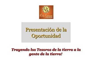 El documento presenta a Bernardo Chua, fundador y CEO de Organo Gold, una compañía de café y suplementos nutricionales. Chua tiene amplia experiencia en ventas multinivel. Organo Gold ofrece varios productos a base de ganoderma, un hongo con propiedades medicinales, cultivado de forma orgánica. La compañía tiene certificaciones de calidad y opera bajo un sistema de compensación que ofrece 7 formas de ganar ingresos para los afiliados.