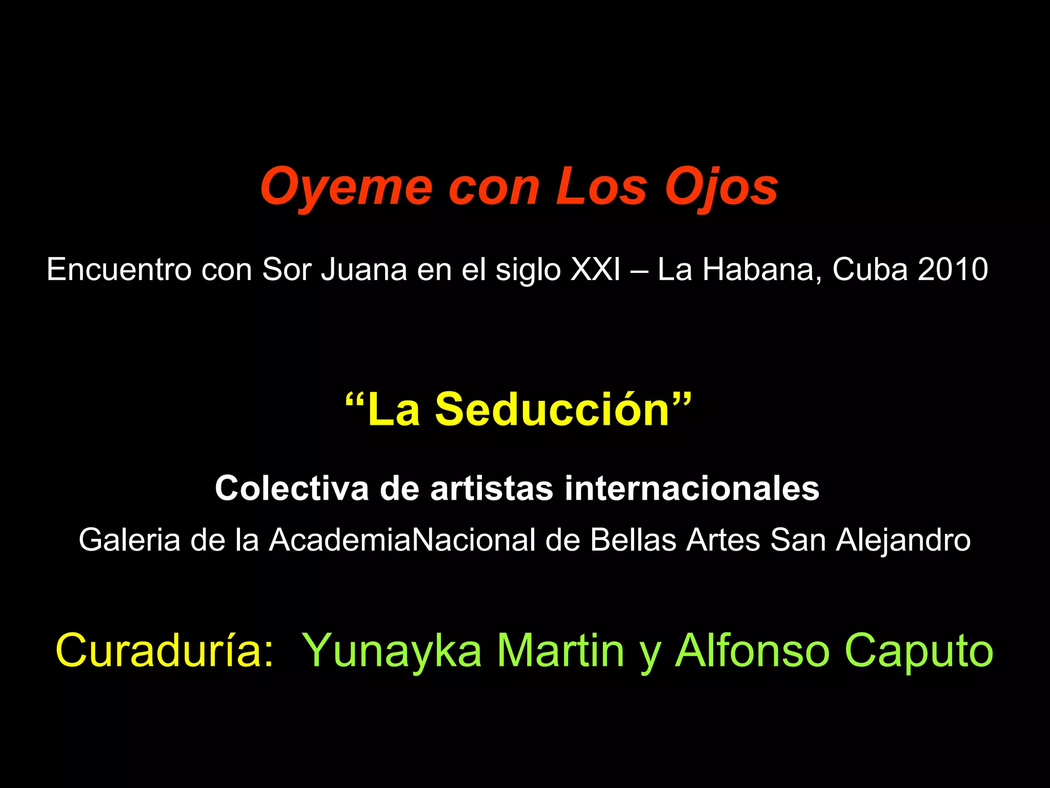 El documento detalla la exposición 'Óyeme con los ojos' en La Habana, Cuba, en 2010, que presenta la obra de artistas internacionales en un diálogo contemporáneo con Sor Juana Inés de la Cruz. La curaduría está a cargo de Yunayka Martin y Alfonso Caputo, enfocándose en 'la seducción' colectiva de las expresiones artísticas. La galería de la Academia Nacional de Bellas Artes San Alejandro sirve como el espacio para esta muestra.