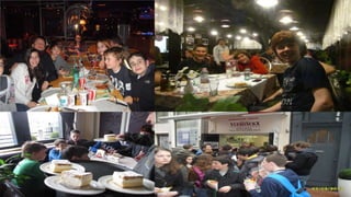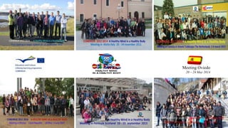 El documento describe una reunión en Oviedo, España del 20 al 24 de mayo de 2014 entre estudiantes de varios países. El objetivo de la reunión era aumentar el nivel de inglés de los estudiantes, conocer otras culturas y países visitando ciudades importantes de Europa, hacer nuevos amigos, aprender deportes diferentes y descubrir nuevas escuelas.