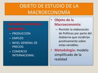 El documento describe los objetivos y componentes de la balanza de pagos de un país, así como algunas políticas macroeconómicas como la política comercial y de tipo de cambio que pueden afectar positivamente a la balanza de pagos y alcanzar un superávit. Además, analiza conceptos clave de la macroeconomía como la producción, el empleo, los precios y el comercio internacional.