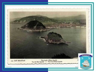 El documento menciona lugares emblemáticos de San Sebastián como el Puente de la Zurriola, el Teatro Victoria Eugenia, Monte Igueldo, el Gran Casino y el Ayuntamiento, la Catedral del Buen Pastor, la Calle Urbieta, el Gran Kursaal y la Playa de Ondarreta. También incluye una cita musical de "La vie en rose" de Edith Piaf y una breve reflexión sobre el descubrimiento de la belleza a cada paso.