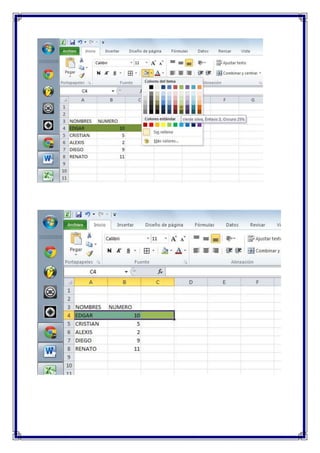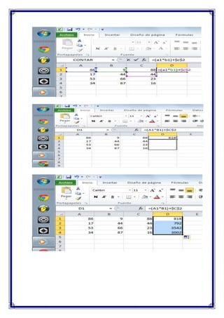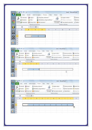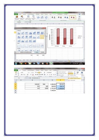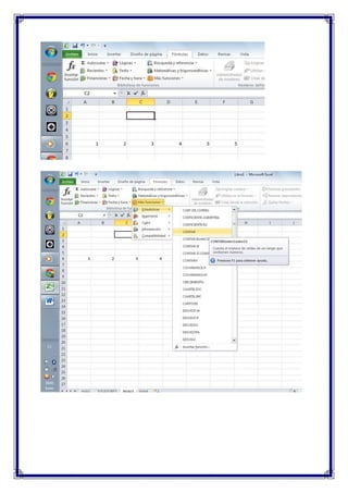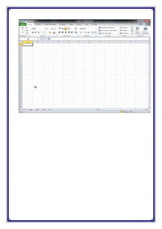Este documento proporciona una introducción a la interfaz de usuario de Excel 2010, incluyendo la barra de funciones, la hoja de cálculo, la barra inferior y otras herramientas. Explica cómo navegar y formatear hojas, celdas, filas y columnas, y cómo realizar operaciones básicas como sumas, multiplicaciones, funciones y gráficos.