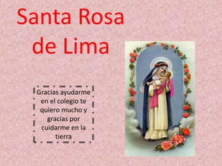 Un niño agradece a Santa Rosa de Lima por ayudarlo en la escuela y cuidarlo mientras vive en la tierra.
