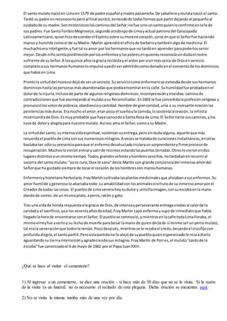 El documento presenta una biografía de Santa Rosa de Lima, la primera santa americana. Nació en Lima, Perú en 1586 de padres españoles. Tuvo una vida dedicada a la religión y la caridad a pesar de la oposición de sus padres. Vivió recluida en una cabaña donde practicaba la oración, el ayuno y la penitencia. Murió a los 31 años siendo un ejemplo de virtud, humildad y amor a Dios.