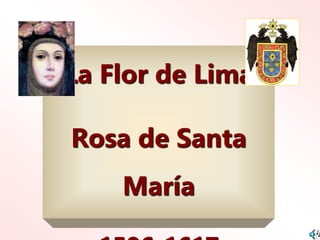 Santa Rosa de Lima nació en 1586 en Lima, Perú. Dedicó su vida a servir a los pobres y enfermos mientras vivía una vida de oración y penitencia. Fue la primera santa canonizada de América. Su ejemplo de humildad, caridad y devoción a Dios la convirtió en un modelo a seguir para los fieles católicos de América y Filipinas.
