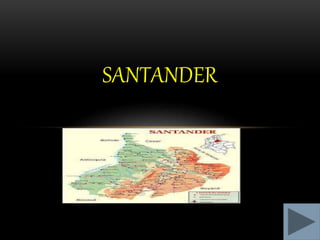 El departamento de Santander, ubicado en Colombia, tiene una rica historia que se remonta a la llegada de los conquistadores españoles en el siglo XVI. Actualmente, Santander está dividido en 87 municipios organizados en 6 provincias. Su economía se basa tradicionalmente en la agricultura pero ha diversificado a industrias como el petróleo. Algunos deportes populares son el levantamiento de pesas, judo y patinaje. Santander celebra varias ferias y festivales a lo largo del año.