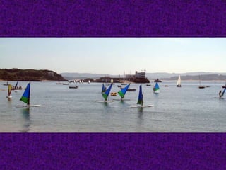 Un poema de cuatro estrofas expresa el amor del autor por la ciudad de Santander, España. El poema describe a Santander como la novia del mar, con estrellas que brillan en su cielo. Aunque el autor dejará la bahía, guardará un recuerdo de ella en su vida y le promete a Santander que volverá por su corazón.
