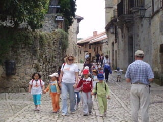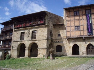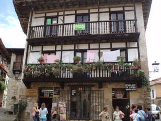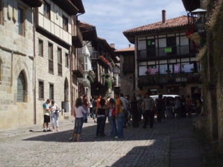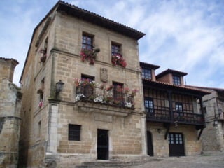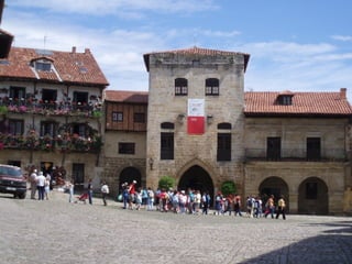 Santillana del Mar es una ciudad con balcones, ventanas, puertas abiertas y cerradas, blasones y fachadas, calles y cosas para visitantes.